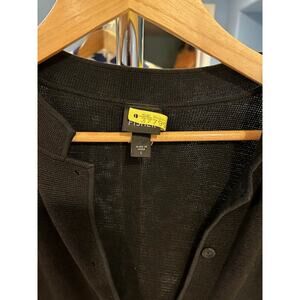 EILEEN FISHER Black Silk Blend Mandarin Collar Button Tunic Sweater Women's LARGE