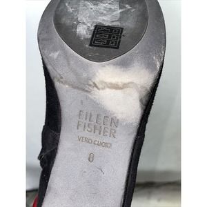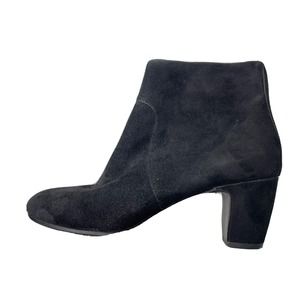 EILEEN FISHER Black Suede Ankle Booties Size 8 Side Zip Block Heel Boots EUC