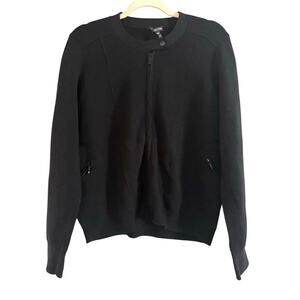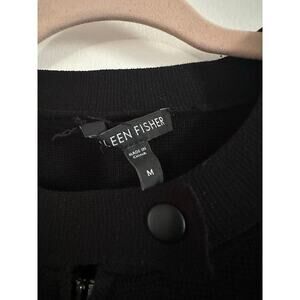EILEEN FISHER Black Tab-Button Collar Full Zip Sweater Knit Moto Jacket - Sz M