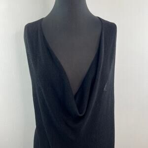 Eileen Fisher Black Tank Top Linen Knit Draped Cowl Neck Pullover Size Small S