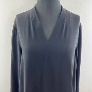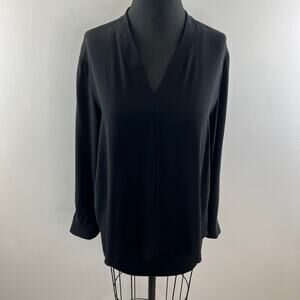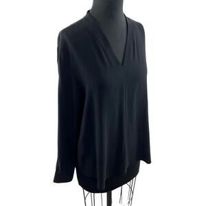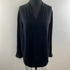 EILEEN FISHER Black Top Silk Lined V-Neck Classic Blouse Career Size Medium M