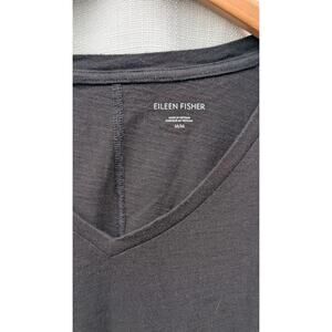 EILEEN FISHER Black V-Neck 100% Organic Cotton Short Sleeve Tee Top Size M