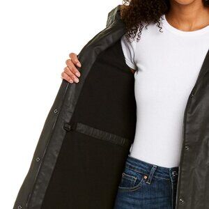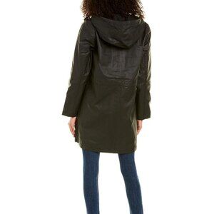 EILEEN FISHER Black Waxed Organic Cotton Twill Hooded Raincoat Sz S