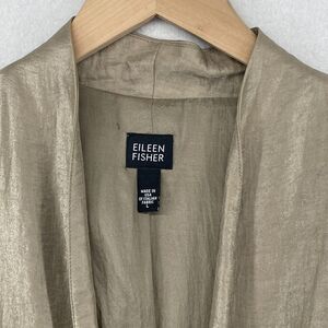 EILEEN FISHER Blazer L Linen Nylon Sparkle Shine Open Front Long Sleeve Beige