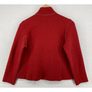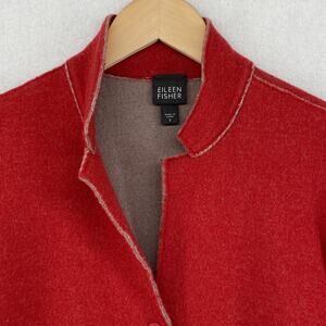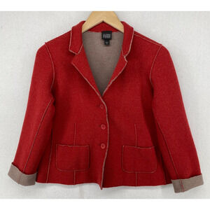 EILEEN FISHER Blazer S Merino Wool Cardigan Doubleknit Button Front Red Tan