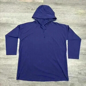 EILEEN FISHER Blue Stretch Jersey Hoodie Top Size Large (flaws Shown 3rd Photo)