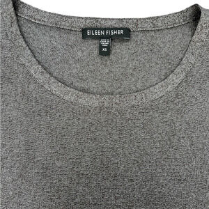 EILEEN FISHER CREWNECK SHEER LIQUID SHINE BOXY TUNIC COLOR BARK SIZE XS