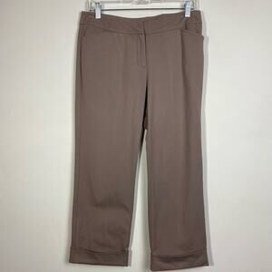 Eileen Fisher organic cotton pants in creamy brown. These trousers are cropped with straight leg and upturned cuffs. High rise waist. Size petite small. Excellent used condition. No flaws detected. See measurements for proper fit.