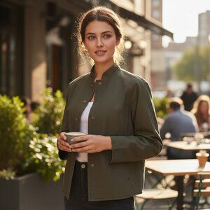 EILEEN FISHER Cadet Utility Cargo Moto Jacket PS Petite Small Olive Cotton