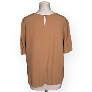 EILEEN FISHER Camel Brown T Shirt Blouse Viscose Keyhole Relaxed Classic Cozy M.