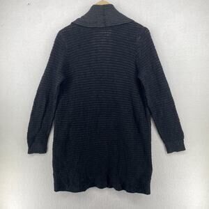 EILEEN FISHER Cardigan L Organic Cotton Thermal Stitch Shaw Open Front Black