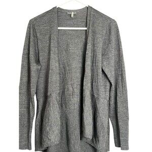 EILEEN FISHER Cardigan M Medium Fine Merino Wool Knit Open Front Sweater Gray