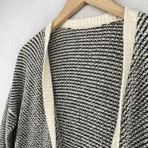 EILEEN FISHER Cardigan M Organic Cotton Boucle Striped Draped Open Front Black