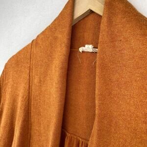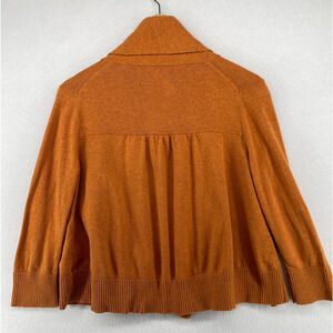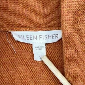 EILEEN FISHER Cardigan S Organic Cotton Crop Shawl Open Front 3/4 Sleeve Brown