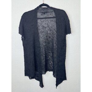 EILEEN FISHER Cardigan Sweater Medium Black Open Knit Minimalist Lightweight K