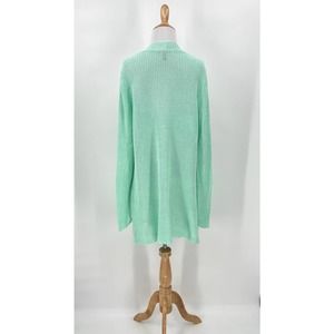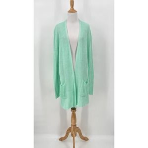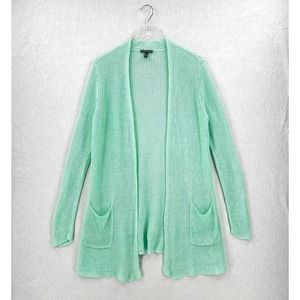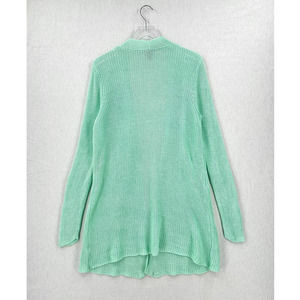 EILEEN FISHER Cardigan Sweater Womens Medium Mint Green Linen Knit Mid Length