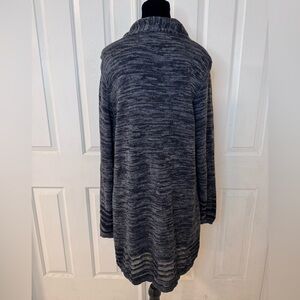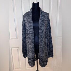 EILEEN FISHER Cardigan XL Marley Organic Cotton Black Gray Space Dye Striped
