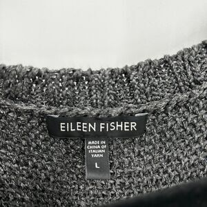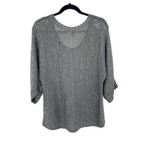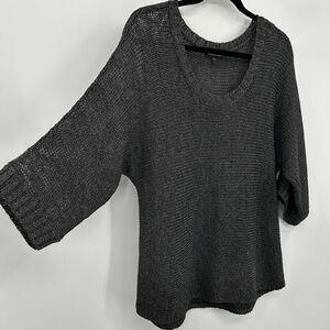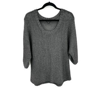 EILEEN FISHER Charcoal Gray Metallic Knit Scoop Neck Dolman Sleeve Sweater Large