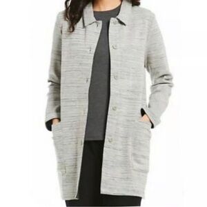 EILEEN FISHER Chevron Knit Long Sleeve Jacket Gray with Pockets size Large