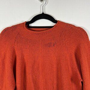 EILEEN FISHER Cotton Roll Neck Knit Sweater Large Orange Cottagecore Fisherman