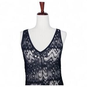 EILEEN FISHER Crinkle Lace Dress Top Layer V-neck Sleeveless - Size Medium