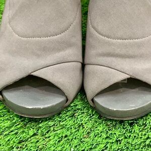 These shoes are gently preowned and exhibit some faint scuffing on back of right heel from driving as as shown in photo and little white marks on toes.. Smoke-free, pet-free home.
