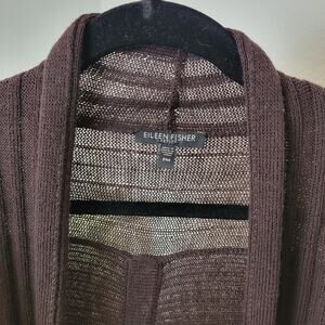 EILEEN FISHER Dark Brown Open Front Ribbed Wool Cardigan Sweater Size Petite PM