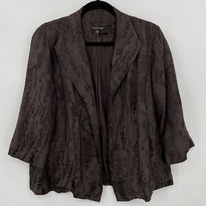 EILEEN FISHER Dark Brown Textured Blazer Style Open Cardigan Size S