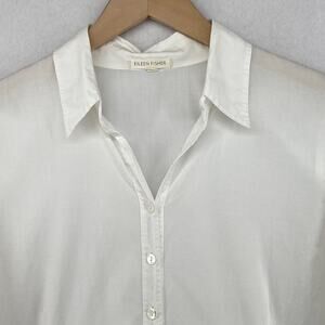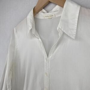 EILEEN FISHER Dress M Organic Cotton Tunic Shirtdress Button Up Long Sleeve Wht