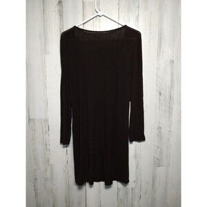 EILEEN FISHER Dress M Viscose Jersey Melange Pintuck Shift 3/4 Sleeve Brown