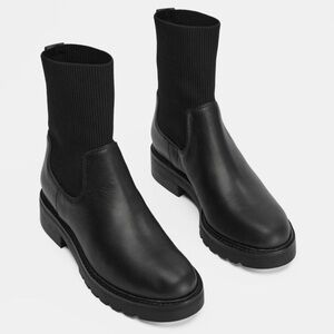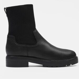 EILEEN FISHER East Leather and Recycled Stretch Knit Sock Boot SIZE 9.5
