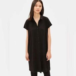 EILEEN FISHER | Fine Tencel Jersey Button Oversized Black Shirtdress | XS
