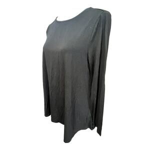 EILEEN FISHER Fine Tencel Jersey Jewel Neck A Line Top Black Womens Sz Small