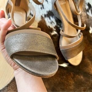 EILEEN FISHER Gold Metallic Gladiator Strappy Heel Sandal Size 10 Boho