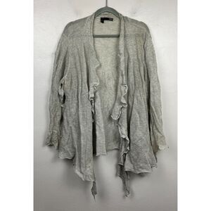 EILEEN FISHER Gray Cotton Open Front Ruffle Cardigan Top Women's Plus Size 2X