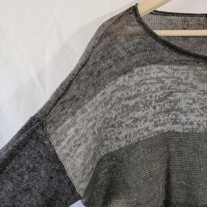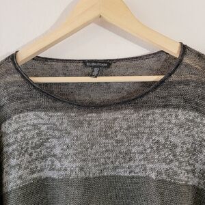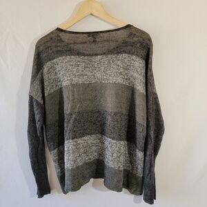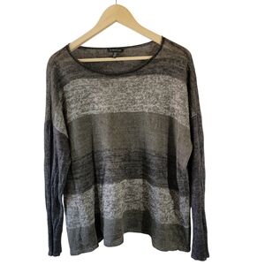 EILEEN FISHER Gray Striped 100% Linen Pullover Knit Top Sz L Quite Luxury Crew