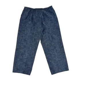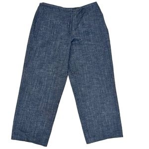 EILEEN FISHER HEATHERED CHARCOAL GRAY COTTON LINEN BLEND WIDE LEG PANTS