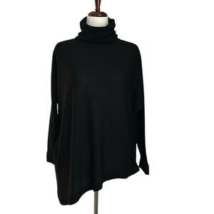 EILEEN FISHER Italian Merino Wool Turtleneck Neck Asymmetrical Knit Sweater S Minimalist