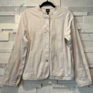 EILEEN FISHER Ivory 100% Cotton Snap Blazer Jacket M Workwear Corpcore Lagenlook