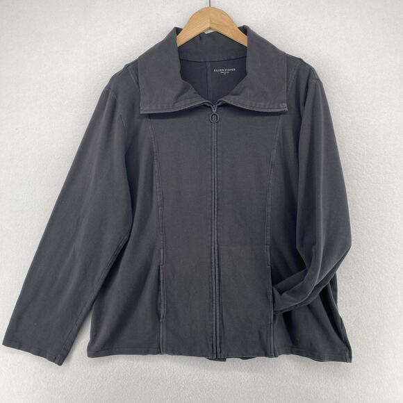 EILEEN FISHER Jacket XL Cotton Stretch Jersey Track Full Zip Sweatshirt Gray USA