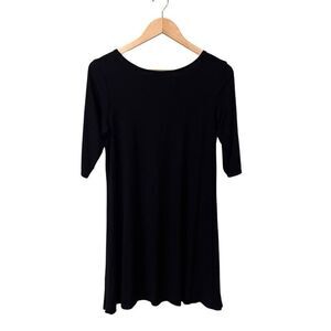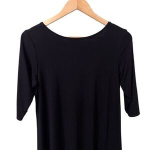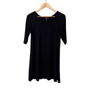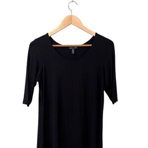 EILEEN FISHER Jersey Tunic Top Size Medium Lagenlook Short Sleeve Black