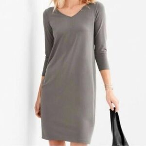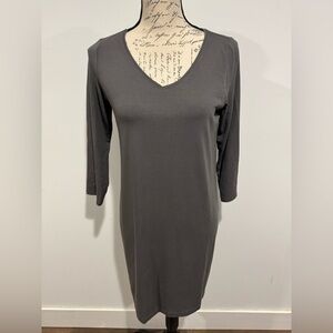 EILEEN FISHER Jersey V-Neck Three-Quarter-Sleeve Dress Gray Size Medium Petite