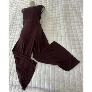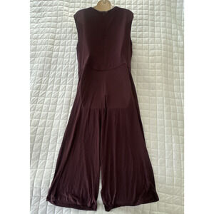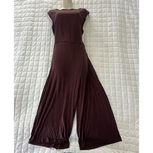 EILEEN FISHER Jumpsuit Womens Large Brown Cropped Wide Leg Jersey Knit Stretch