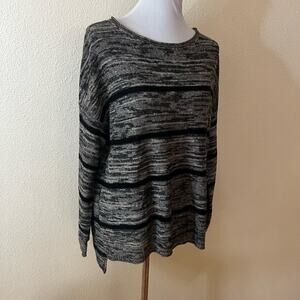 EILEEN FISHER Knit lightweight sweater MEDIUM Black Grey Striped Organic Linen