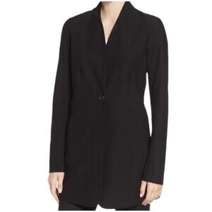 EILEEN FISHER L Large Washable Stretch Crepe Jacket Single Button Long Black
