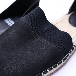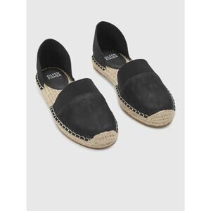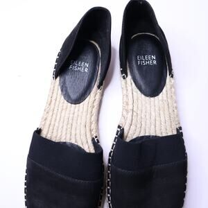 EILEEN FISHER Lady Tumbled Nubuck Espadrille Flats Black Open Sides Women's 9