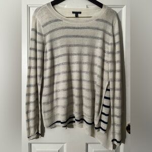 EILEEN FISHER Layered Linen Blend Layered Stripe Nautical LG Asymmetrical Hem