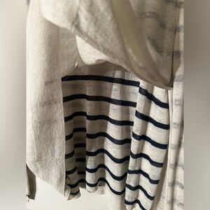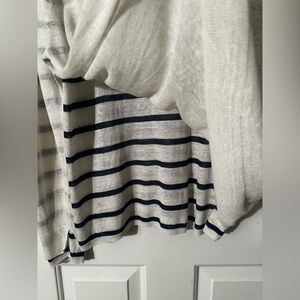 EILEEN FISHER Layered Linen Blend Layered Stripe Nautical LG Asymmetrical Hem