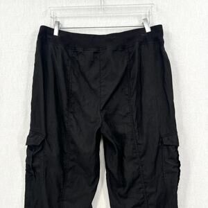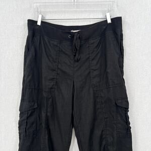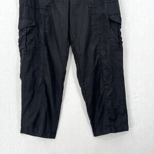 EILEEN FISHER Linen Cargo pants Womens Large Black High Rise Straight Pockets