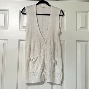 EILEEN FISHER Linen Cotton Slub Button Front Sweater Vest Cardigan White Size L